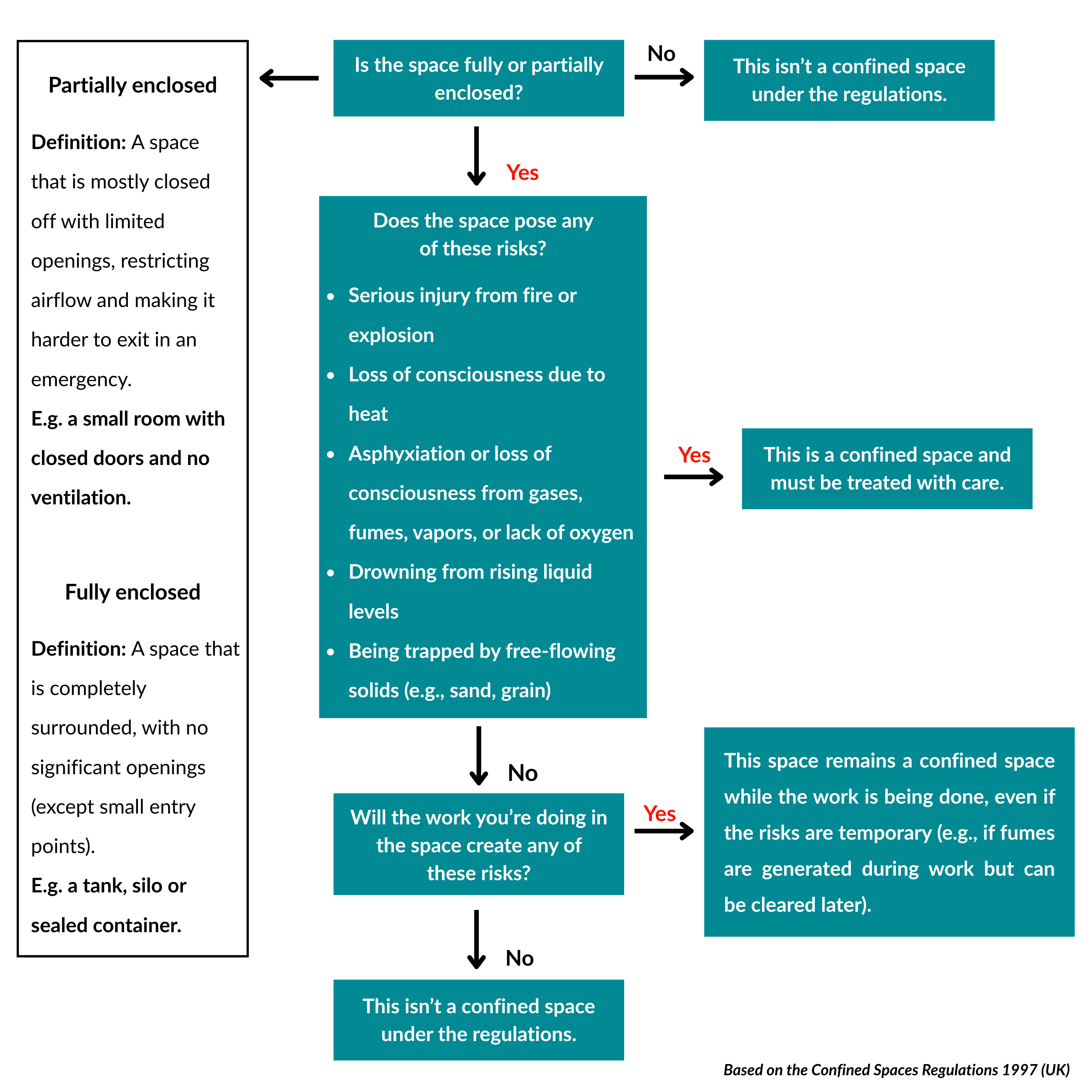 To help you determine whether the space you’re working in qualifies as a confined space, here’s a simple decision tree: